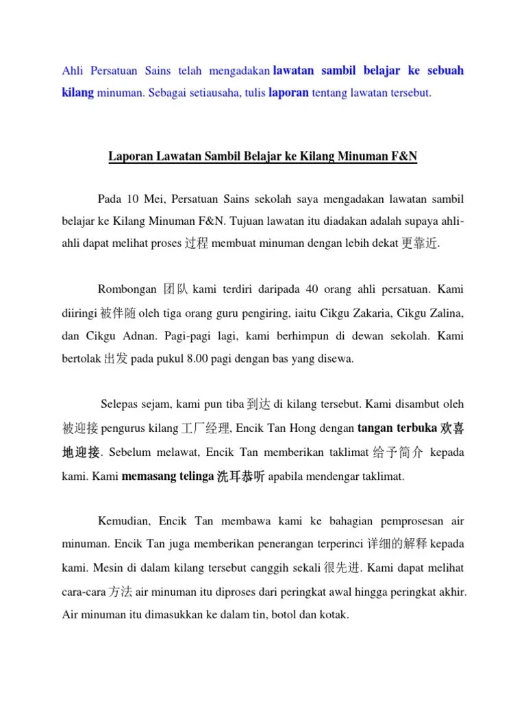 Contoh Karangan Laporan Darjah 6 : Koleksi Contoh Karangan Dan Latihan Bahasa Melayu Cikgu Mohd Fadli Salleh Online